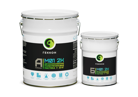 Геккон М01 2К - Двухкомпонентная полиуретановая мастика, отверждающаяся в результате реакции полиольной и изоцианатной части с образованием бесшовной и прочной резиноподобной пленки на различных изолируемых поверхностях. В специальном тиксотропном исполнении (Геккон М01 2К Шовная) предназначена для герметизации деформационных швов и других подвижных швов, имеет повышенную адгезию и эластичность в различных условиях эксплуатации.